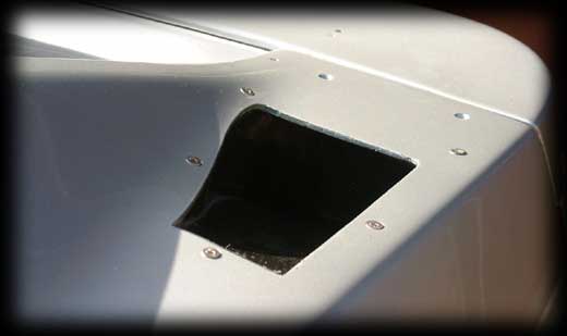 An additional NACA duct is located above the left-hand rear wing. This is for the potential of an additional transmission oil cooler (for the race engine) and is currently used to direct cool air to the exhaust outlets.