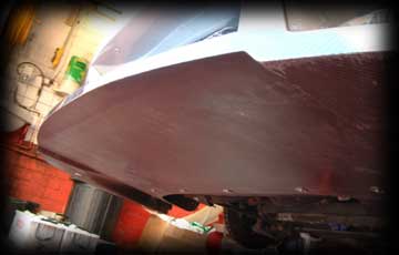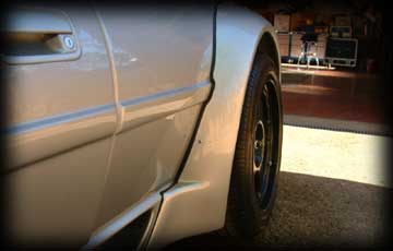 The rear arch extensions cover the significant increase the rear width of the car. To protect these from debris passed through the front arch vents, it was necessary to protect them with helicopter rotor tape.
