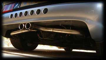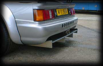 The rear diffuser was designed to create additional down-force on the rear. Again, a shortened floor version was employed. After looking at the diffuser, it was agreed that a customised exhaust set-up would be needed. This would replicate the race car with two central exits above the diffuser.